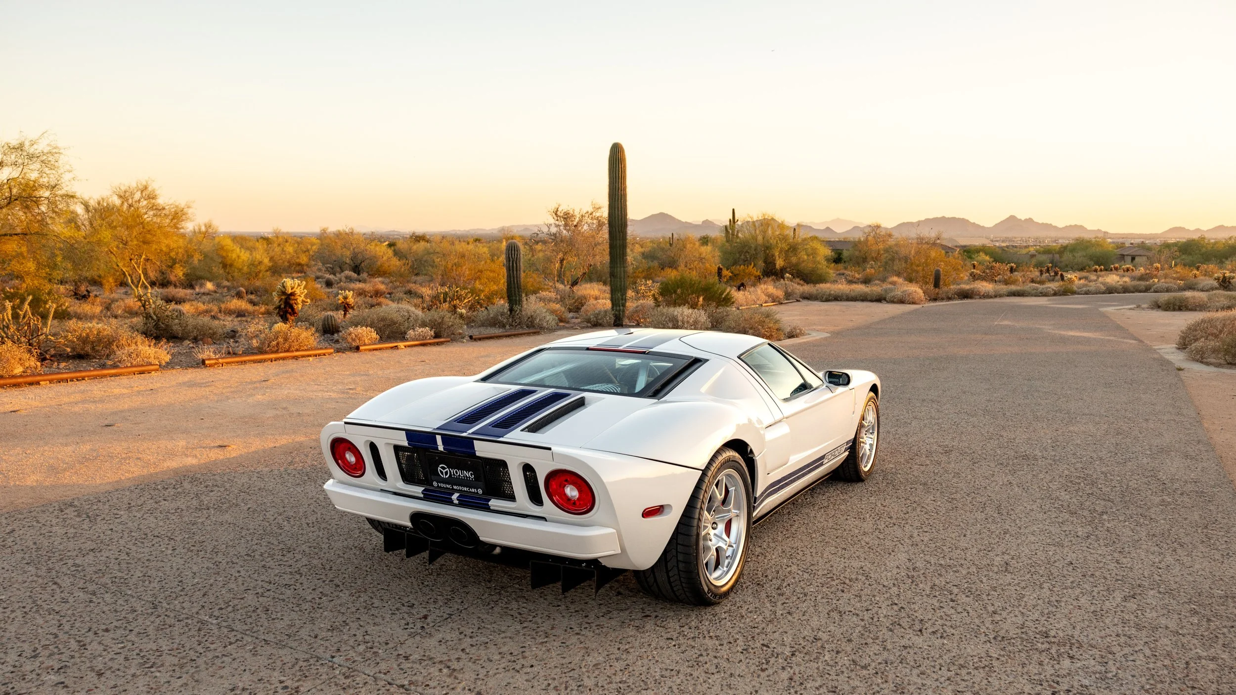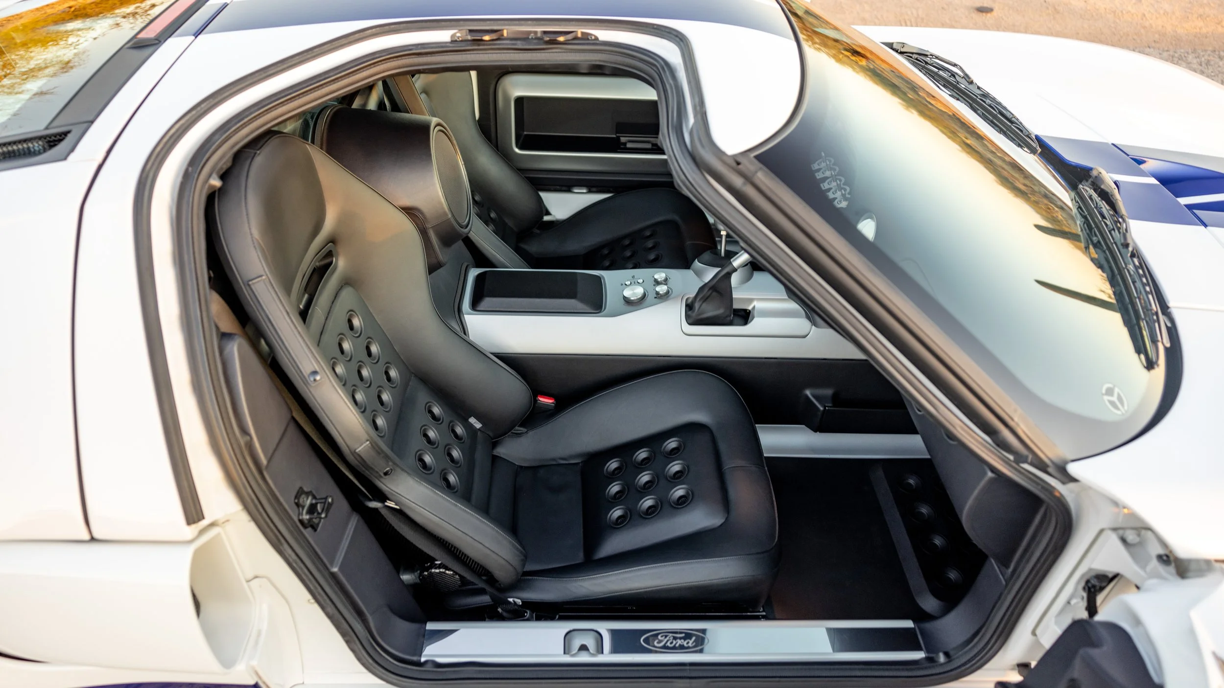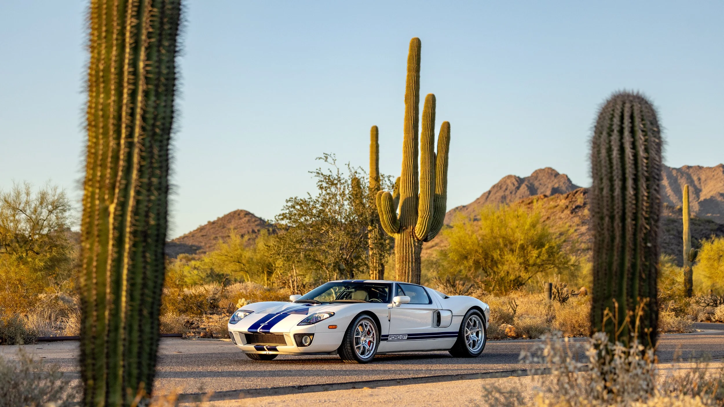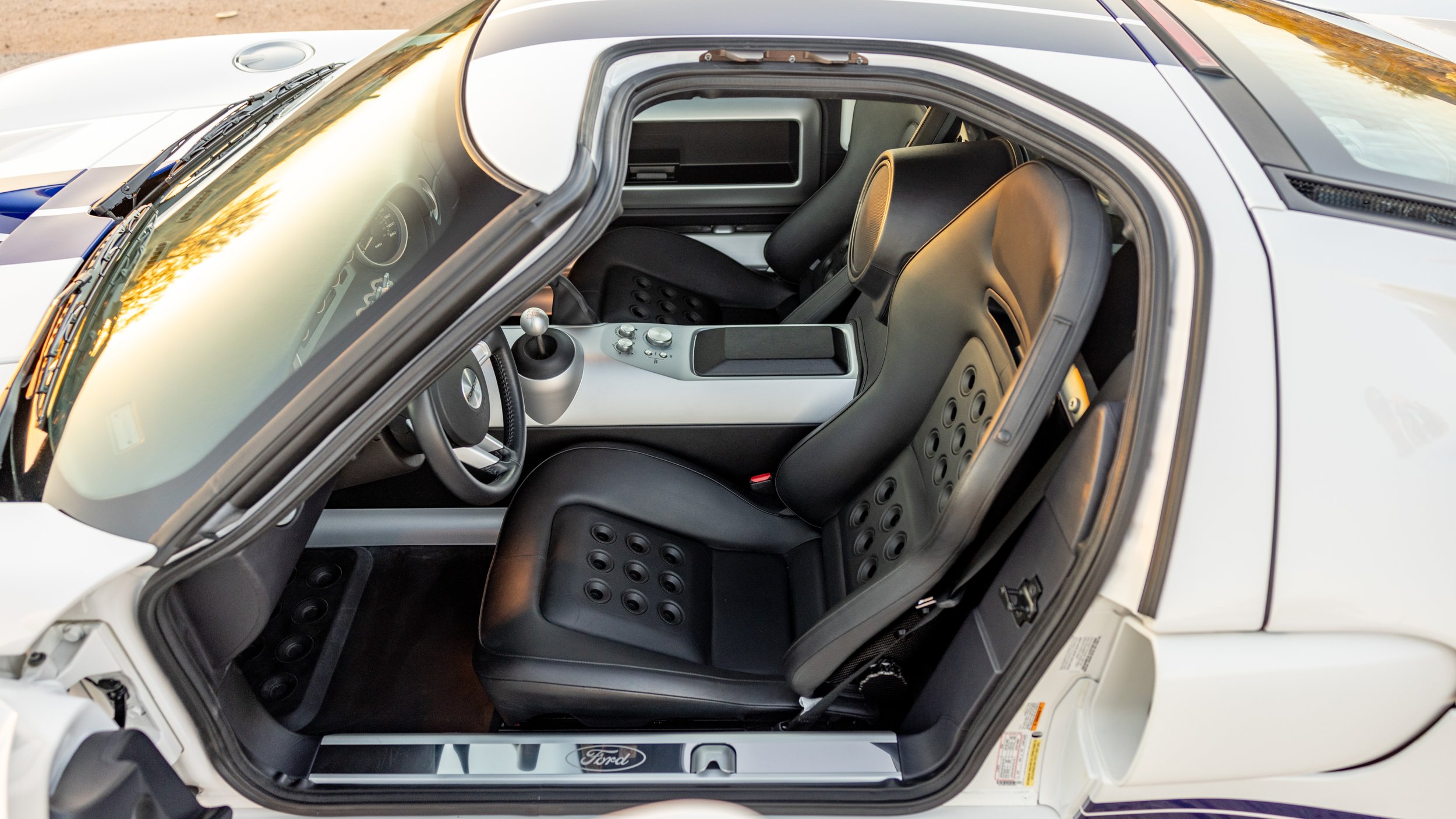 Some cars exist to be admired, while others are built to be remembered. The 2005 Ford GT falls firmly into the latter, capturing the spirit of its Le Mans-winning predecessor with a modern execution that still feels purposeful nearly two decades later. This example, finished in the iconic white with blue stripes combination, presents with just 1,845 miles and stands as a highly preserved representation of one of Ford’s most celebrated performance cars. As a desirable 4 option car, it retains the key elements collectors seek, balancing originality with the unmistakable presence that defines the model.
