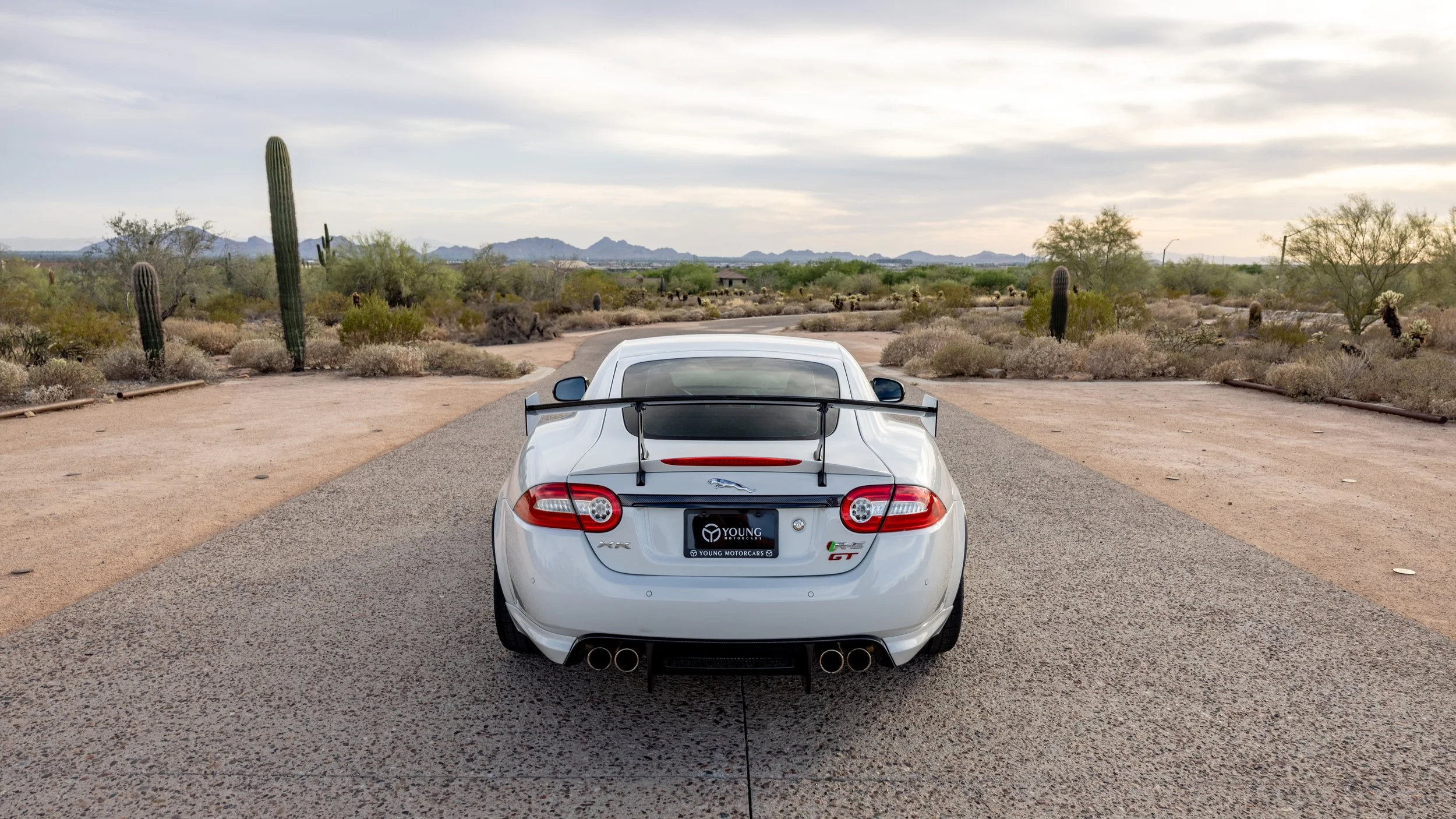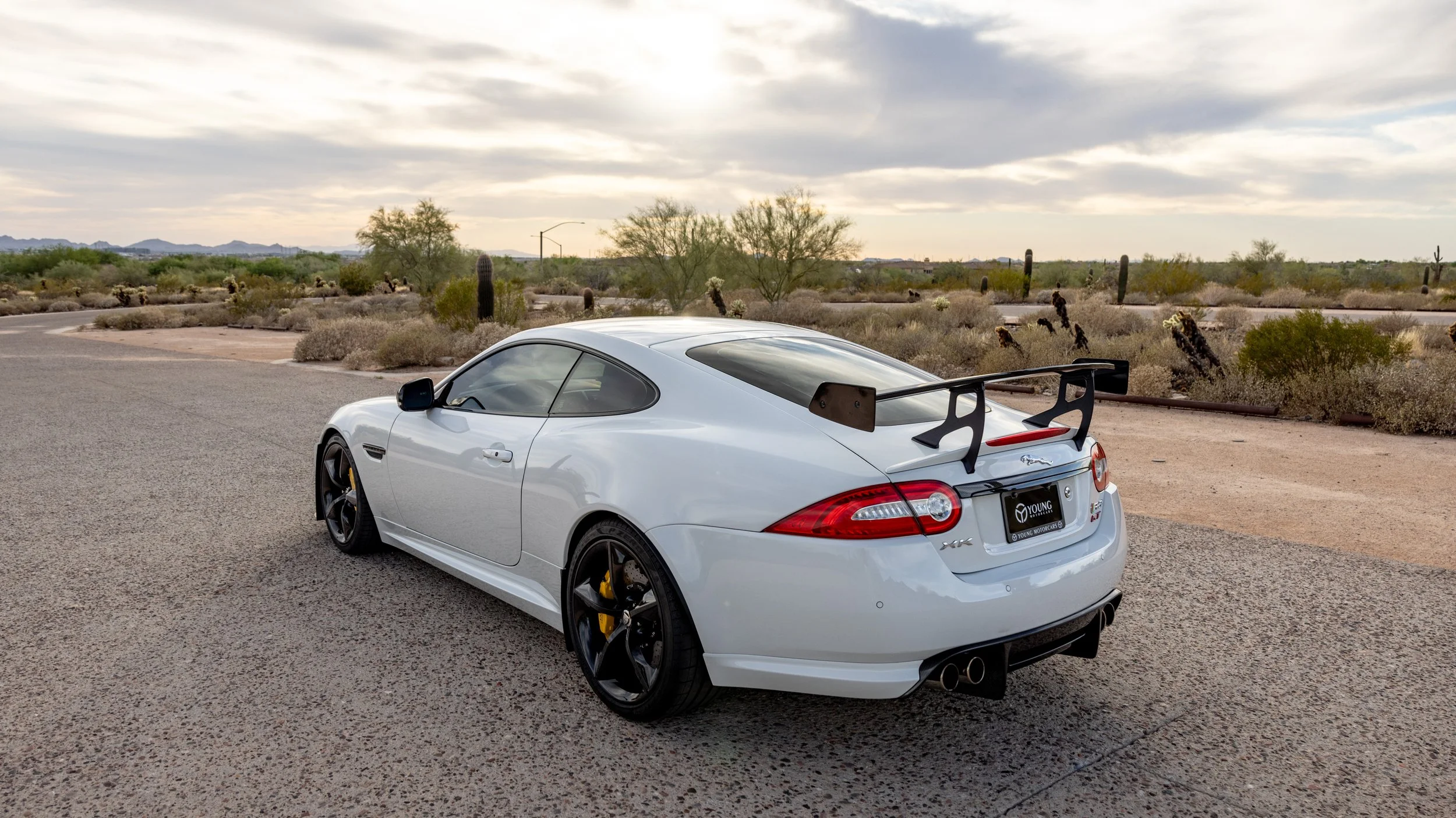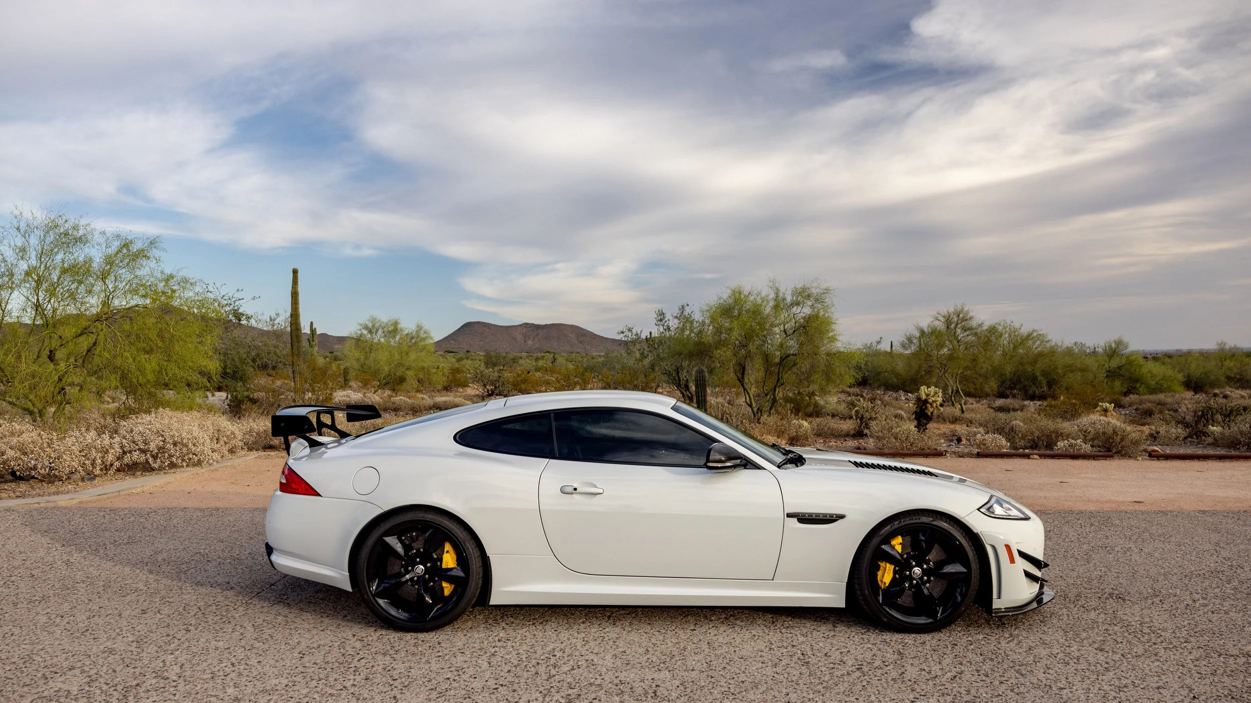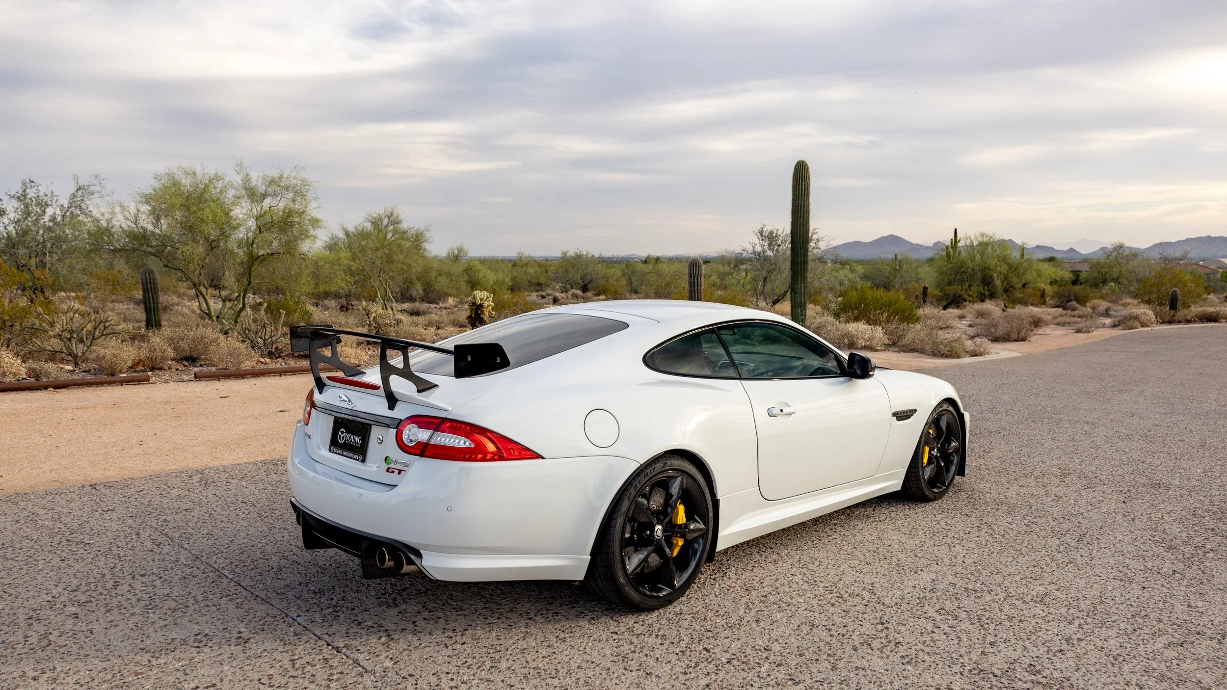 Some cars are built for the road, and a select few feel as though they were shaped by the track first. This 2014 Jaguar XKR-S GT falls firmly into the latter category, presented in a striking white over black configuration with just 3,645 miles. Its presence is immediately defined by an extensive carbon fiber aero package that extends across the exterior, giving the car a purposeful, engineered look that reflects its limited-production intent. Every angle communicates precision and restraint, blending Jaguar’s grand touring heritage with a sharper, more focused edge.