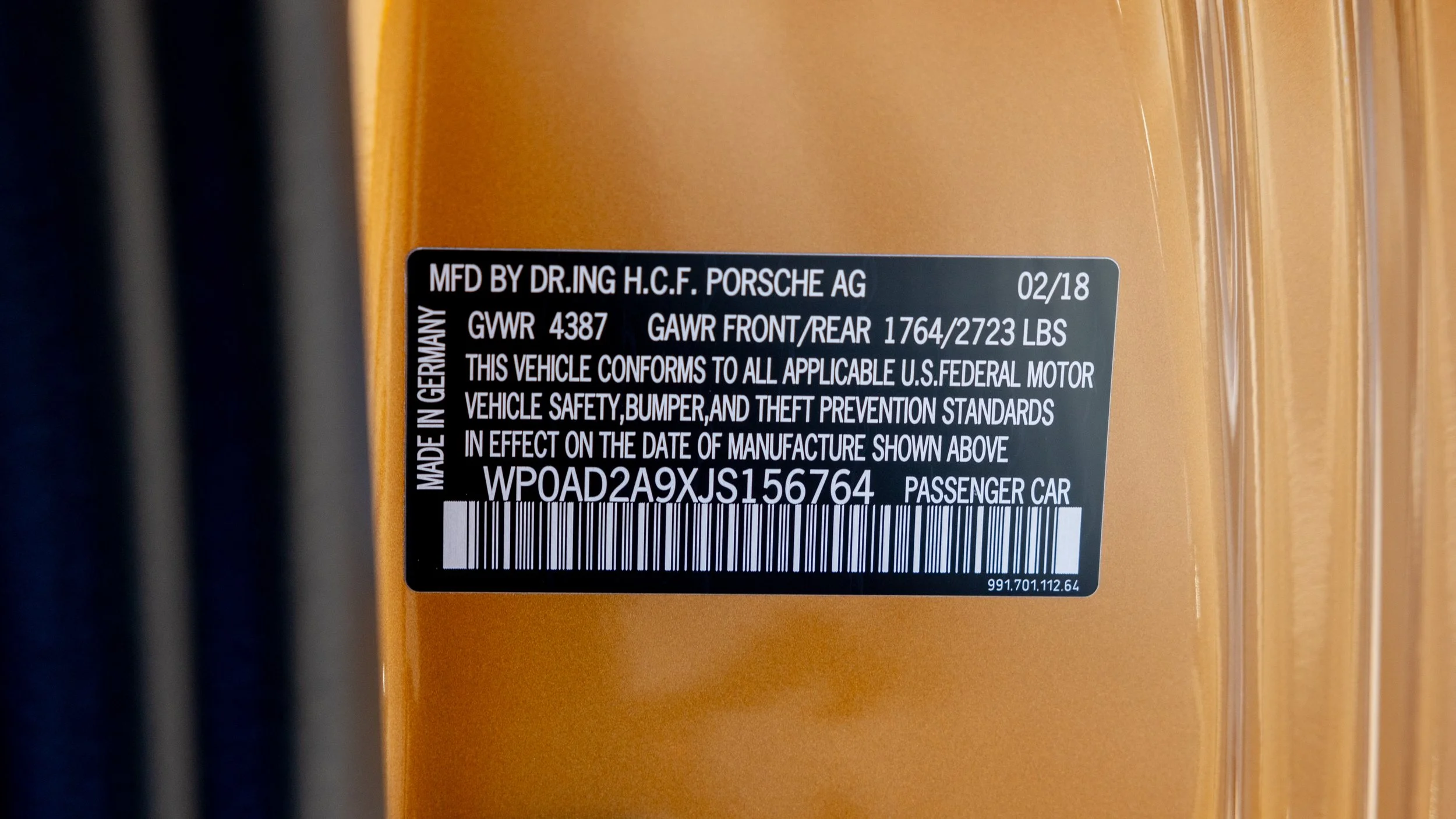 VIN: WP0AD2A9XJS156764