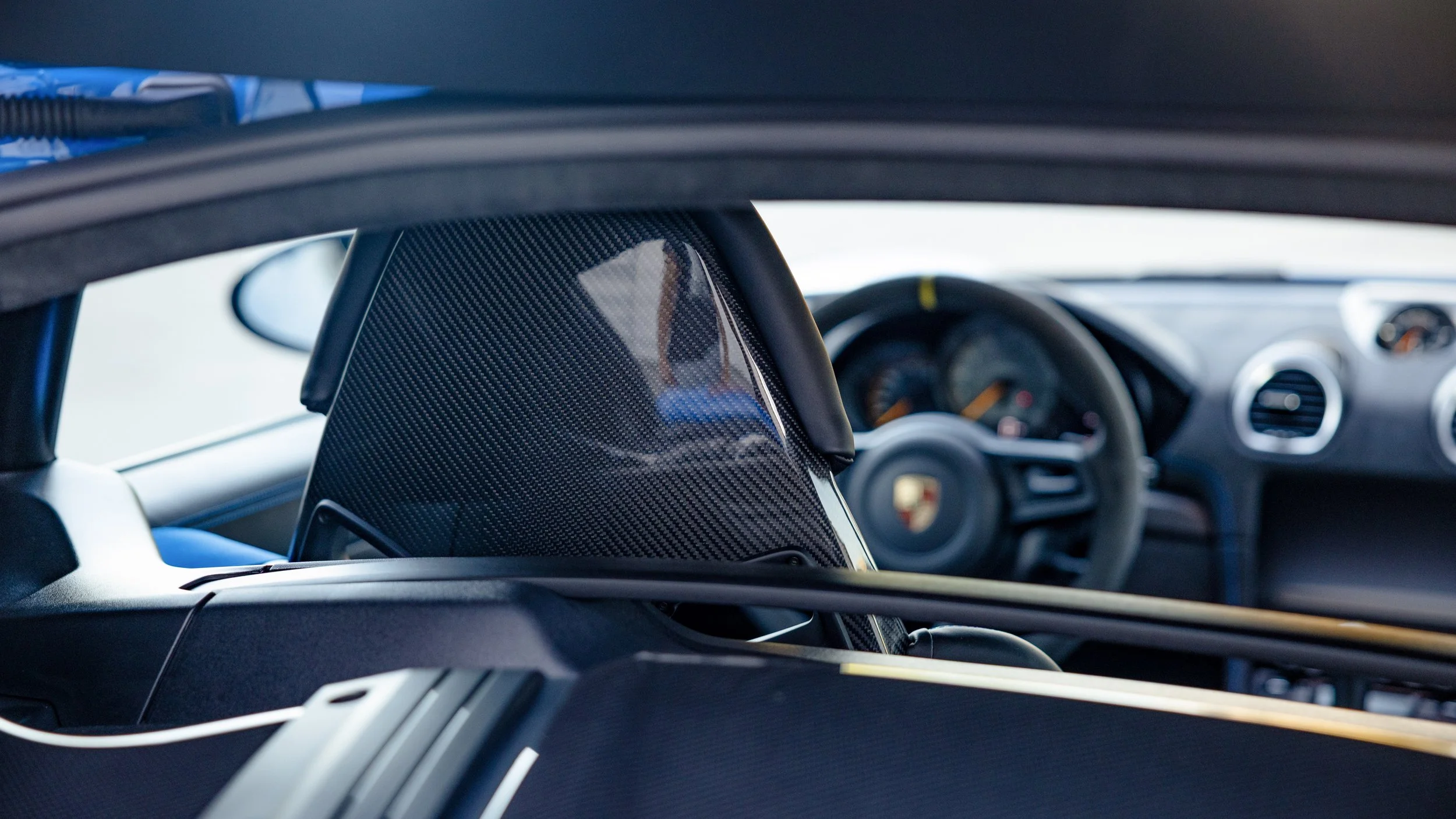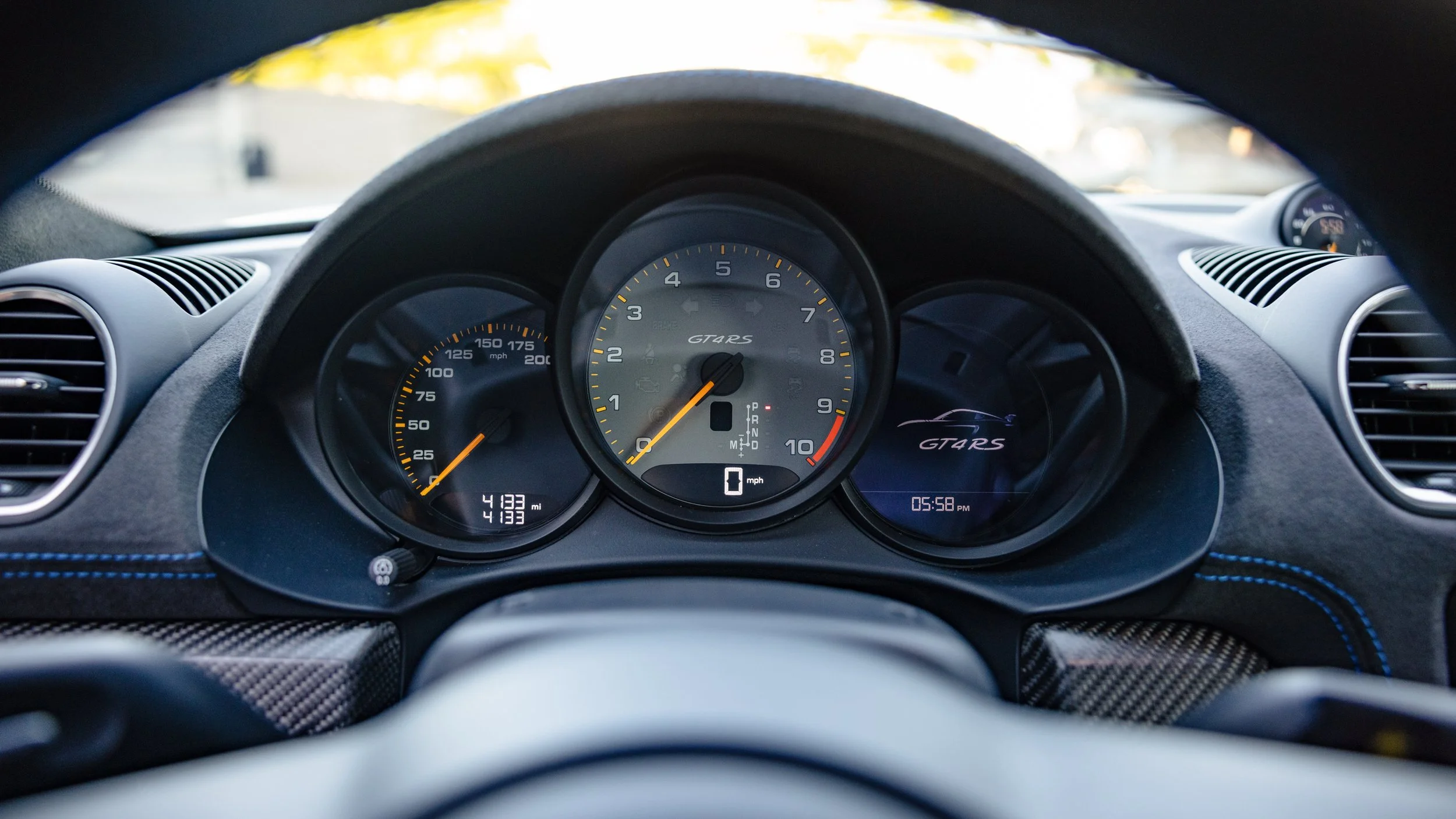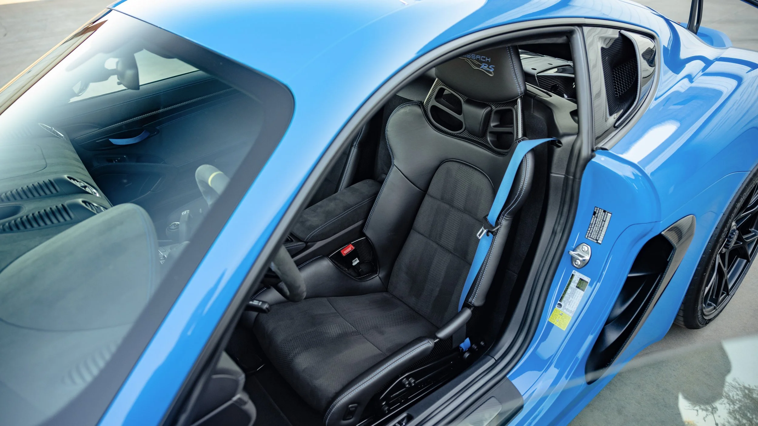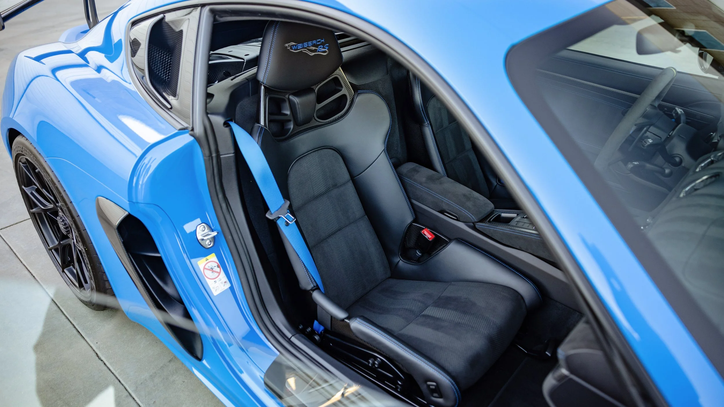 Few modern cars blur the line between road car and race car as convincingly as the Porsche 718 Cayman GT4 RS. Finished in striking Shark Blue, this example presents with just 4,135 miles and a specification that leans heavily toward its motorsport roots. Equipped with the highly sought-after Weissach Package, it features extensive carbon fiber throughout, including the exposed carbon side air intakes and lightweight carbon bucket seats that immediately set the tone once inside. The fixed carbon rear wing and purposeful aerodynamic elements are not just visual highlights but integral to the car’s performance-focused design. A front axle lift system adds a layer of practicality, making it far more usable in everyday driving than its track pedigree might suggest.