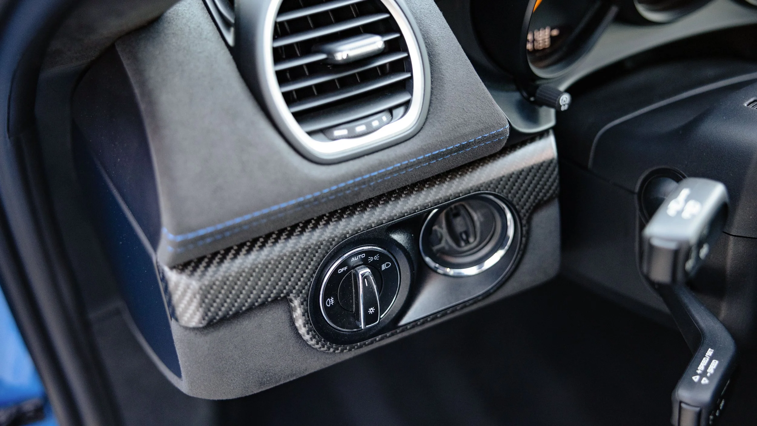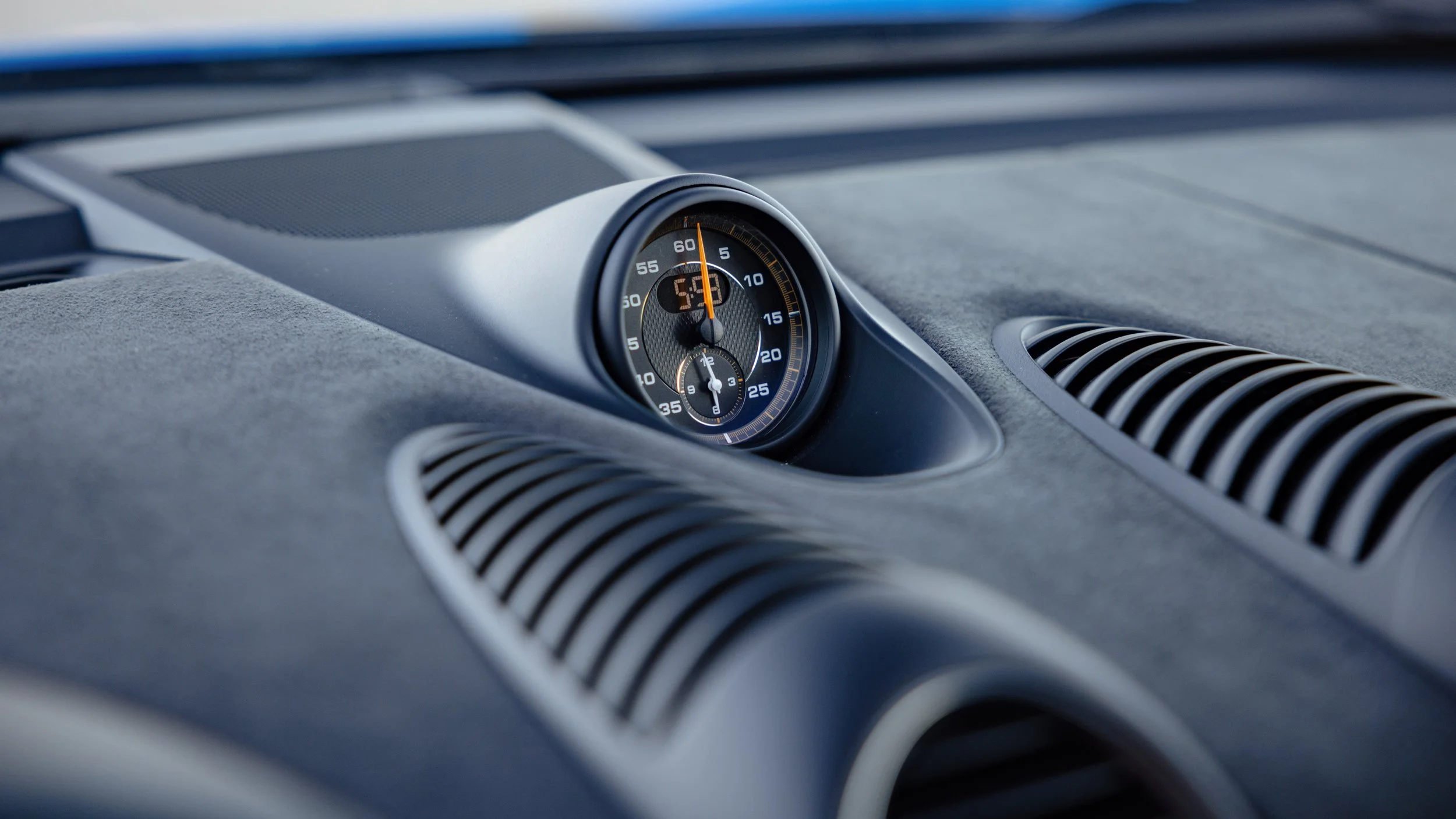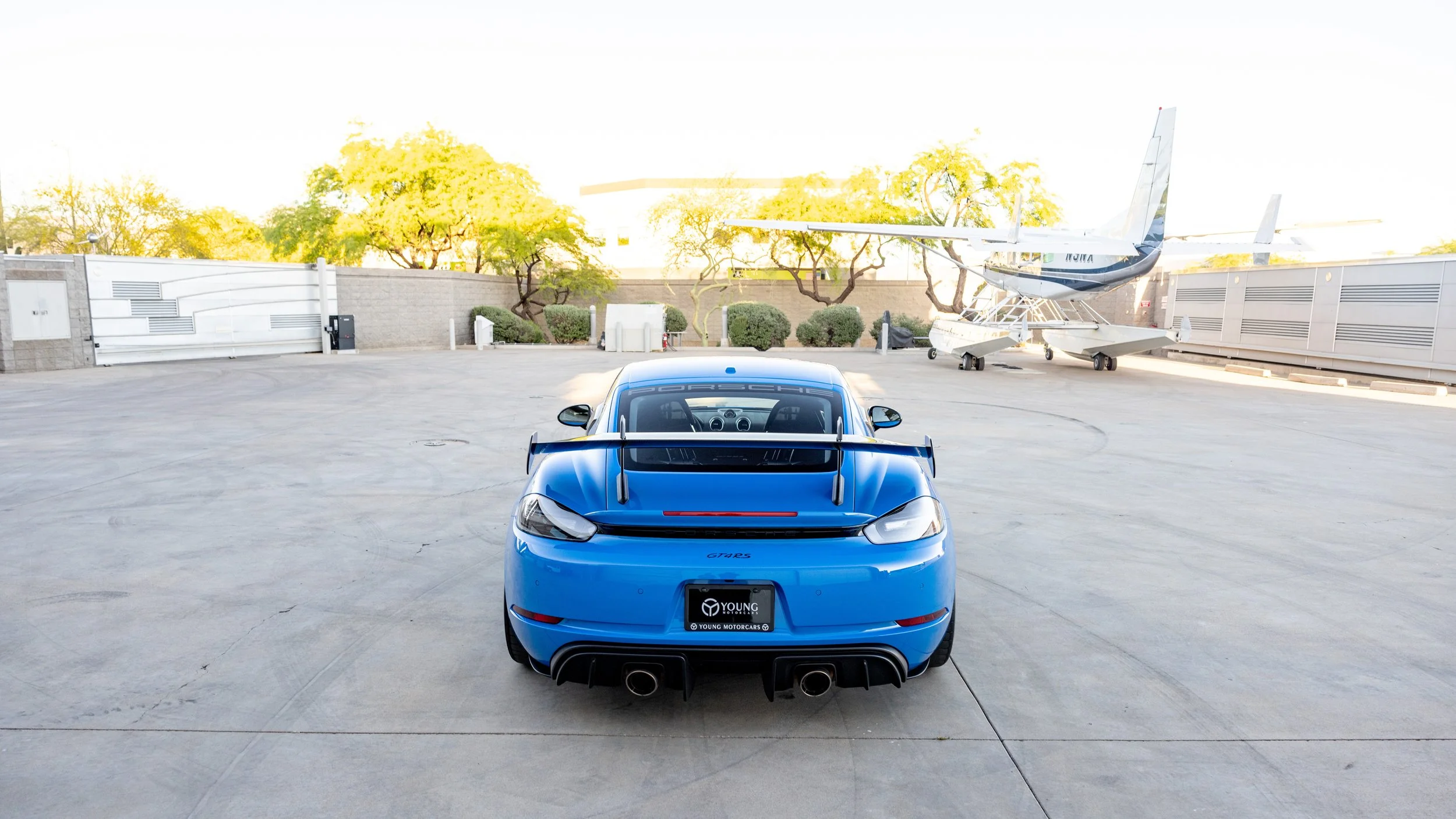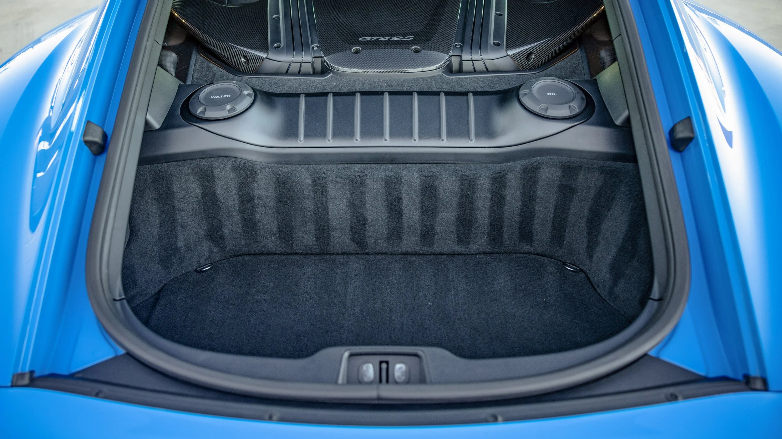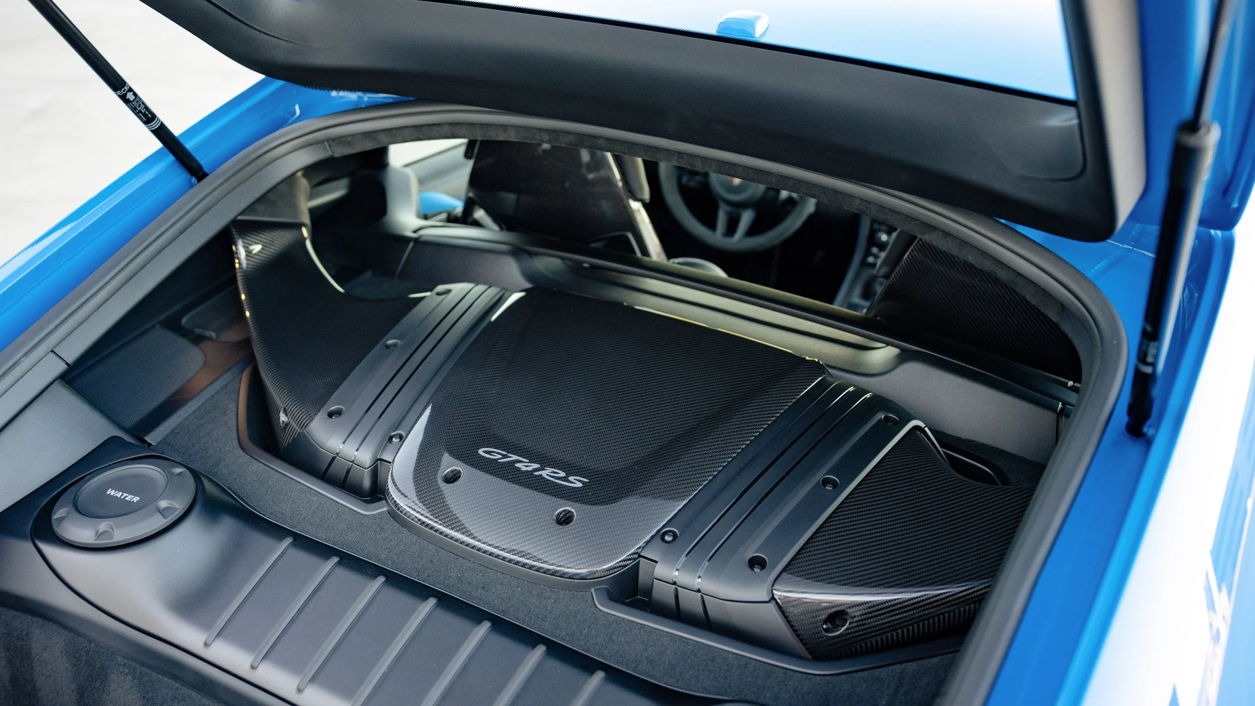 Few modern cars blur the line between road car and race car as convincingly as the Porsche 718 Cayman GT4 RS. Finished in striking Shark Blue, this example presents with just 4,135 miles and a specification that leans heavily toward its motorsport roots. Equipped with the highly sought-after Weissach Package, it features extensive carbon fiber throughout, including the exposed carbon side air intakes and lightweight carbon bucket seats that immediately set the tone once inside. The fixed carbon rear wing and purposeful aerodynamic elements are not just visual highlights but integral to the car’s performance-focused design. A front axle lift system adds a layer of practicality, making it far more usable in everyday driving than its track pedigree might suggest.