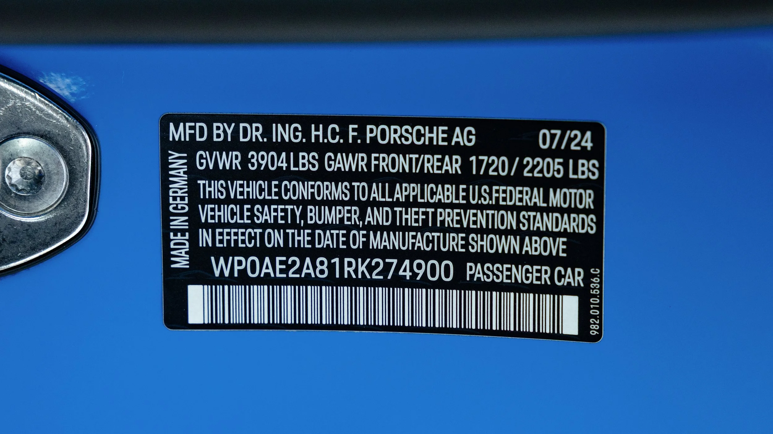 VIN: WP0AE2A81RK274900
