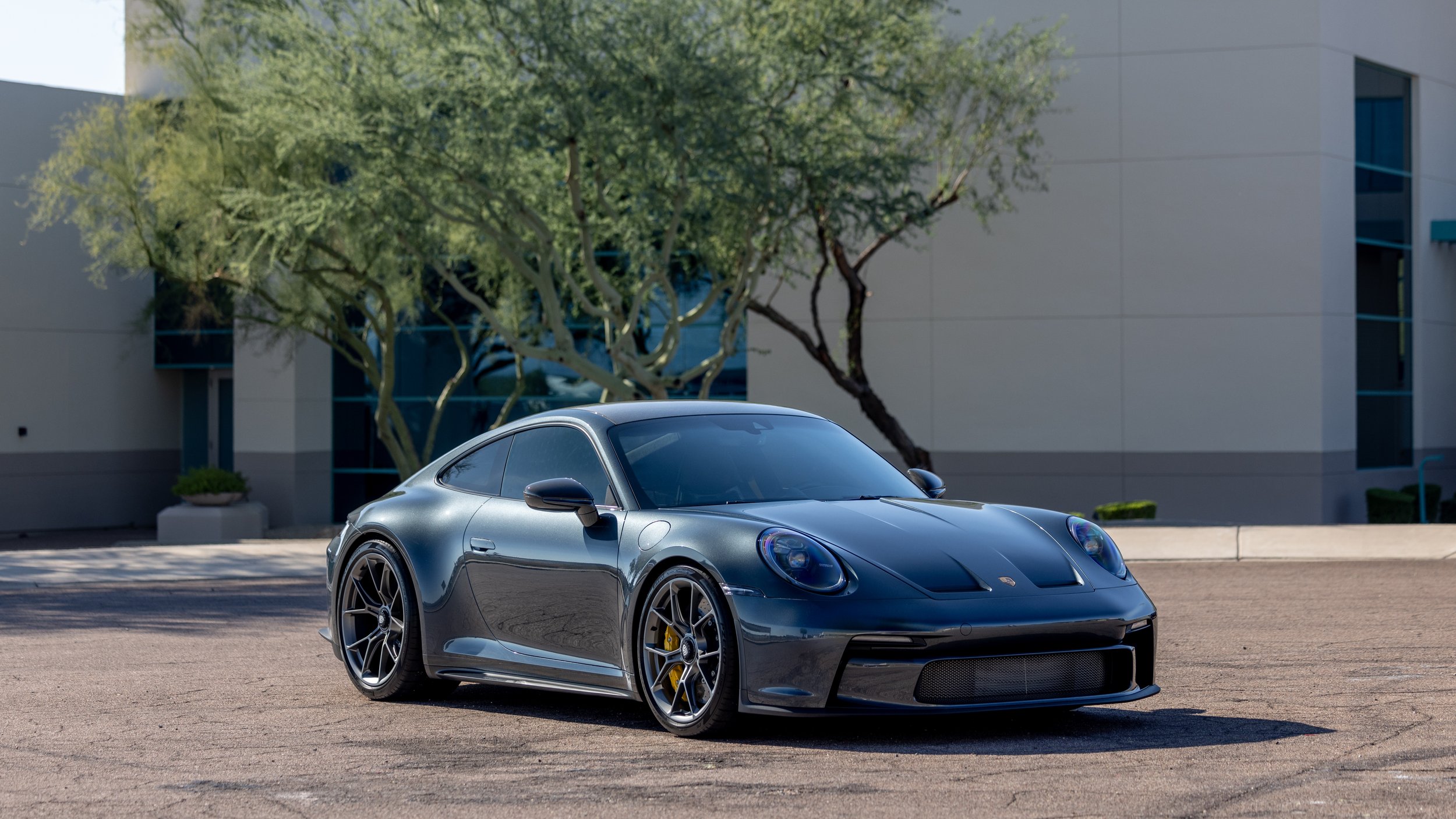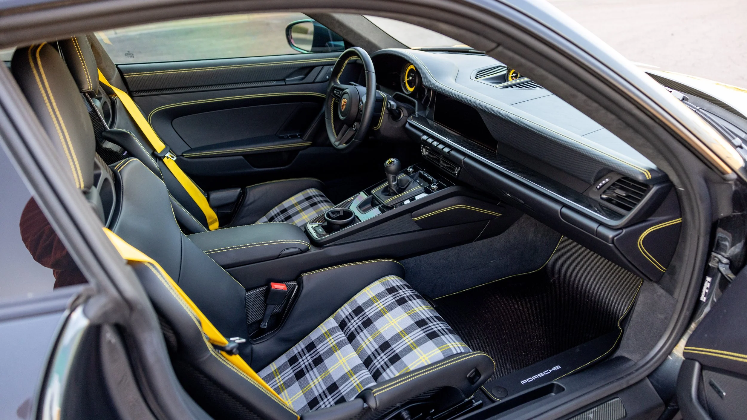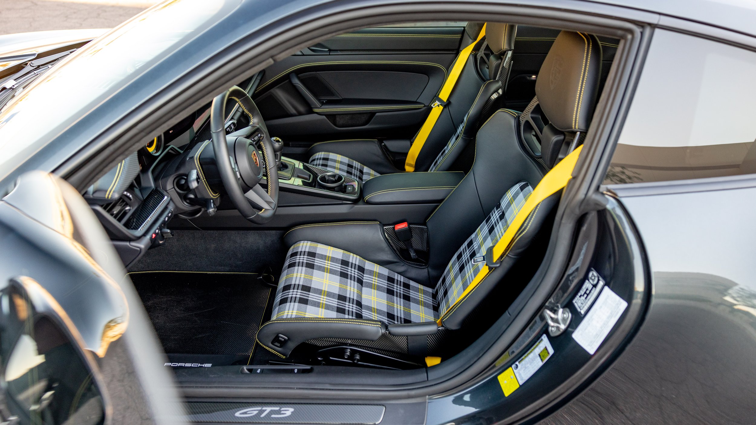 A 2024 Porsche 911 GT3 Touring finished in rare PTS Carbon Steel Grey Metallic speaks directly to those who value precision, restraint, and capability in equal measure. This example shows fewer than 540 miles and is configured for drivers who prefer a purist’s connection to the car. The black interior is accented with yellow belts and stitching, and now features P1 Designs seat inserts to further elevate the cabin. Extensive carbon trim and desirable carbon bucket seats set the tone for focused performance. A manual transmission completes the specification and offers the level of engagement that makes the Touring variant such a standout in the GT3 lineup.