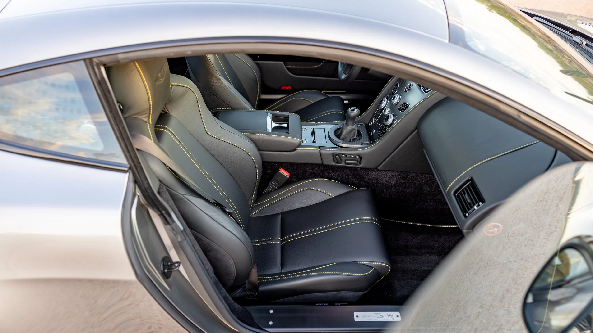 This 2017 Aston Martin V12 Vantage S manual is a rare and exceptional find with only 100 examples produced for the U.S. market. With just under 1,300 miles on the odometer, this particular car stands as a collector-grade piece, offering an incredibly low-mileage opportunity for enthusiasts who appreciate fine craftsmanship and performance. Finished in an iconic Silver over a Black leather look, this V12 Vantage S makes an immediate statement with its striking presence. The aggressive stance is enhanced by an array of extensive carbon fiber options, further emphasizing its performance-oriented character, while the yellow brake calipers and black wheels add bold accents to the already captivating design.